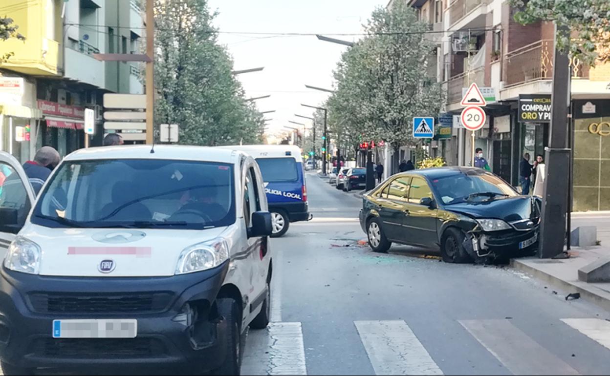 El siniestro se produjo, según testigos presenciales, cuando varios vehículos, que circulaban en dirección al centro de la ciudad, se detuvieron ante el paso de cebra que hay a la altura de la Librería Nevada, para facilitar el paso de peatones. Sin embargo, nada más ponerse en marcha los vehículos, el coche situado en último lugar trató de rebasar a los que le precedían, encontrándose con que el primero de ellos trató de girar hacia la calle Casicas, por lo que el conductor que adelantaba se lo encontró en su trayectoria y fue a estamparse contra la farola que hay en la esquina de Casicas con José de Mora, produciendo un fuerte impacto que afectó a la fachada y causó notables daños en el vehículo afectado.