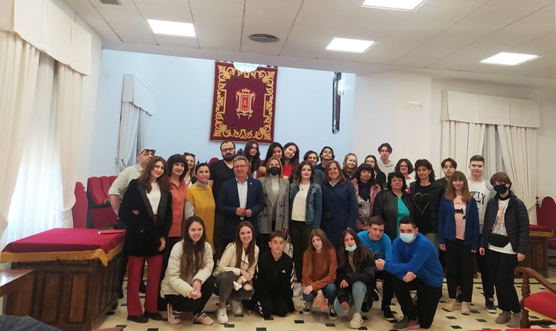Alumnado y profesorado de cuatro centros educativos de Bulgaria, Rumanía, Turquía y Polonia que participan junto al Colegio Divino Maestro Baza en el proyecto Erasmus+ « ... Around cultures sharing heritage treasures» fueron recibidos el lunes en el salón de plenos del Ayuntamiento por el alcalde, Manolo Gavilán, y la concejala de Educación, Yolanda Fernández. El grupo compartirá experiencias hasta este sábado 30 de abril y a todos ellos el alcalde les ha animado a disfrutar de esta ciudad «acogedora y milenaria que este año celebra el 50 Aniversario del Descubrimiento de su Dama y que ostenta a lo largo de todo 2022 el distintivo de Ciudad Europea del Deporte». A los grupos visitantes les ha invitado a volver siempre que quieran. «Que esta sea vuestra primera vez en Baza, pero no lo última, y que compartáis con vuestras familias esta gran experiencia».