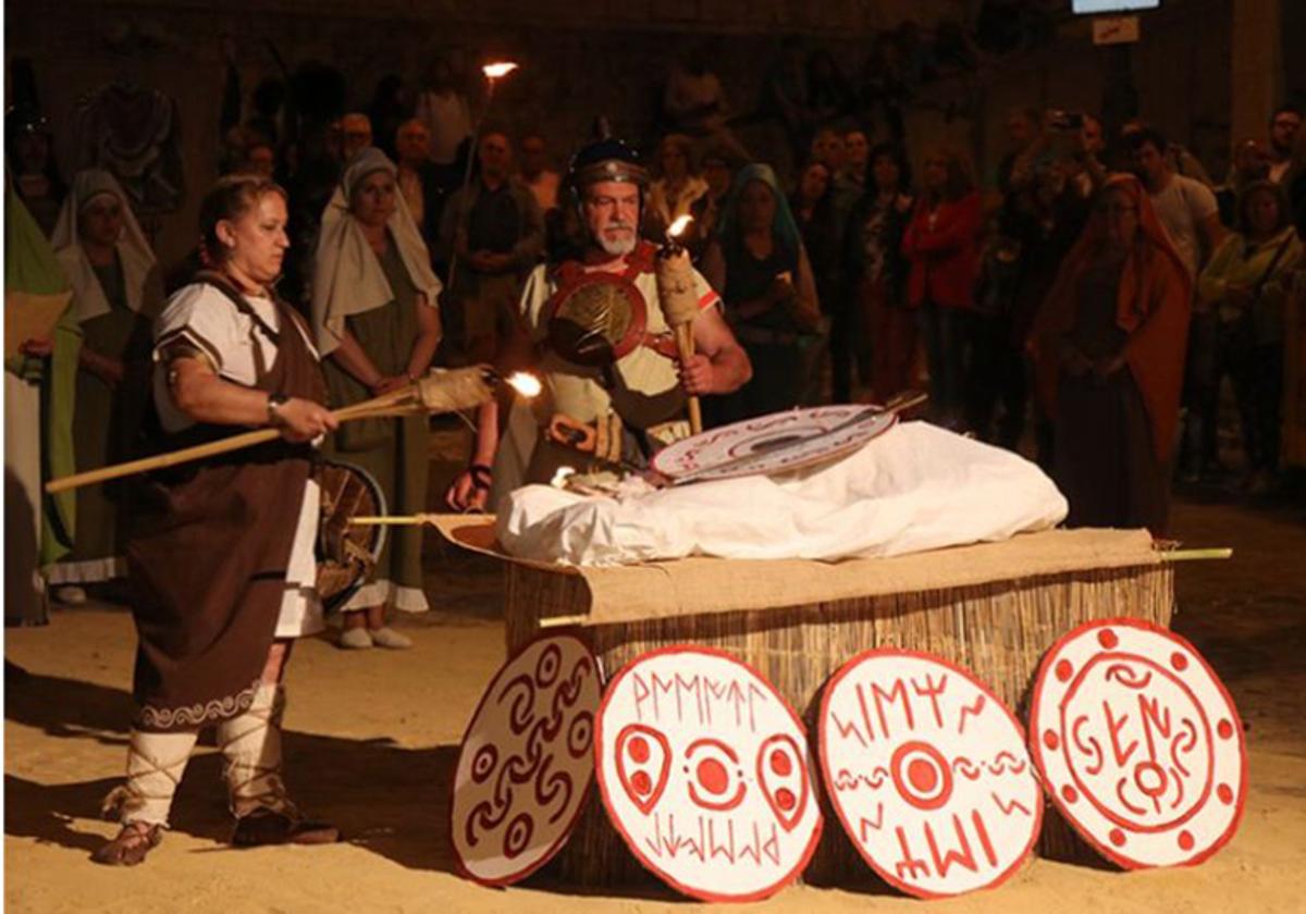Por segundo año consecutivo, un nutrido grupo de íberos se desplazaron hasta tierras saguntinas para presentar una de las actividades más esperadas de la programación: la recreación del ritual de cremación de Ansiul, el Guerrero Íbero, una representación histórica de gran carga simbólica y emocional.