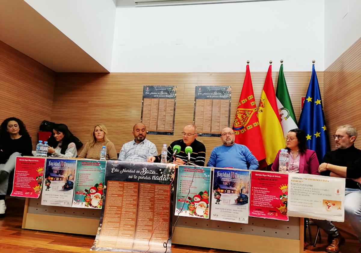 Las áreas municipales de Turismo y Cultura, Gobernación, Deportes, Comercio y Barrios, y Bienestar Social del Ayuntamiento de Baza han sumado sus esfuerzos para elaborar ... una amplia y variada programación navideña para todos los públicos con la que se espera conformar tanto a los ciudadanos particulares, asociaciones y, especialmente, al sector comercial de la ciudad, que también ha realizado una importante apuesta por animar a los vecinos durante las próximas semanas. La Campaña de Navidad llega bajo el título genérico «Esta Navidad en Baza… no te pierdas nada», con más de un centenar de actividades que se desarrollarán en las calles y en espacios culturales como el teatro Dengra, el salón Ideal auditorio Enrique Pareja, el Museo Arqueológico Municipal, el pabellón municipal de Deportes, el Plan Integral, entre otros. Rodeados de la cartelería y de los folletos promocionales que se han diseñado, se presentaba oficialmente esta programación en un acto que contó con la presencia del alcalde de Baza, Pedro J. Ramos, y los concejales de Turismo y Cultura, José Gabriel López, de Deportes y Comercio, José Antonio Valdivieso, de Bienestar Social, Priscila Martínez, y de Gobernación, Mª Carmen Sánchez, con la presidenta de la Asociación de Comerciantes, Mª José Valverde, con José Sánchez, comerciante en representación de la Plaza Serrano, e incluso con una trabajadora social del consistorio, Maribel Peláez, que detalló algunas de las propuestas de su competencia. «Aunque hay algunos días que no hay nada, la gran mayoría del mes de diciembre y los primeros días de enero del año que viene tienen todos alguna actividad para ver o para participar… hemos hecho un gran esfuerzo que ha supuesto un coste cercano a los 150.000 euros, una cantidad importante para Baza», indicado el presidente del área municipal de Cultura.