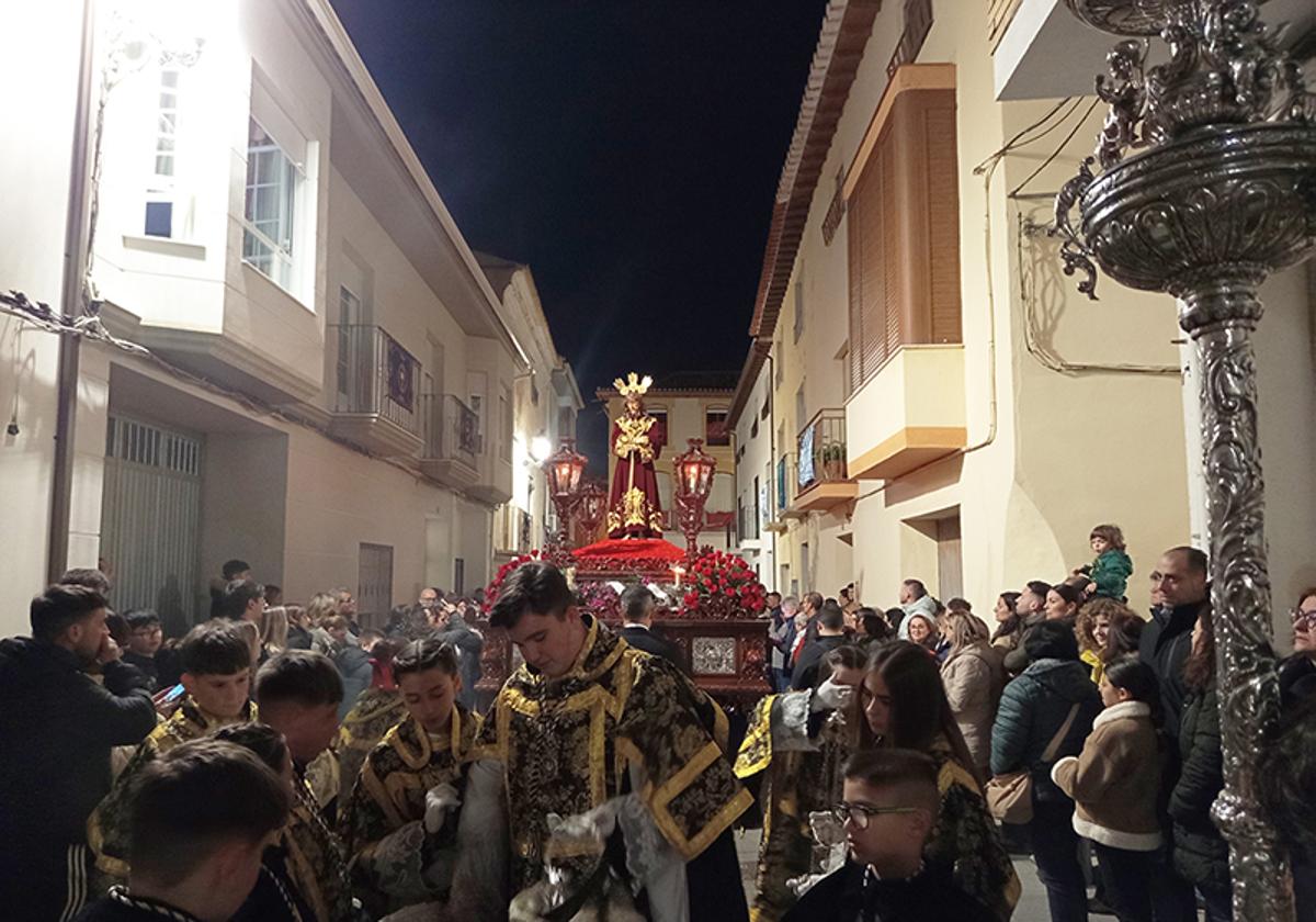 El paso del señor del barrio de Santiago es portado por su cuadrilla de costaleras como viene siendo habitual desde 1988