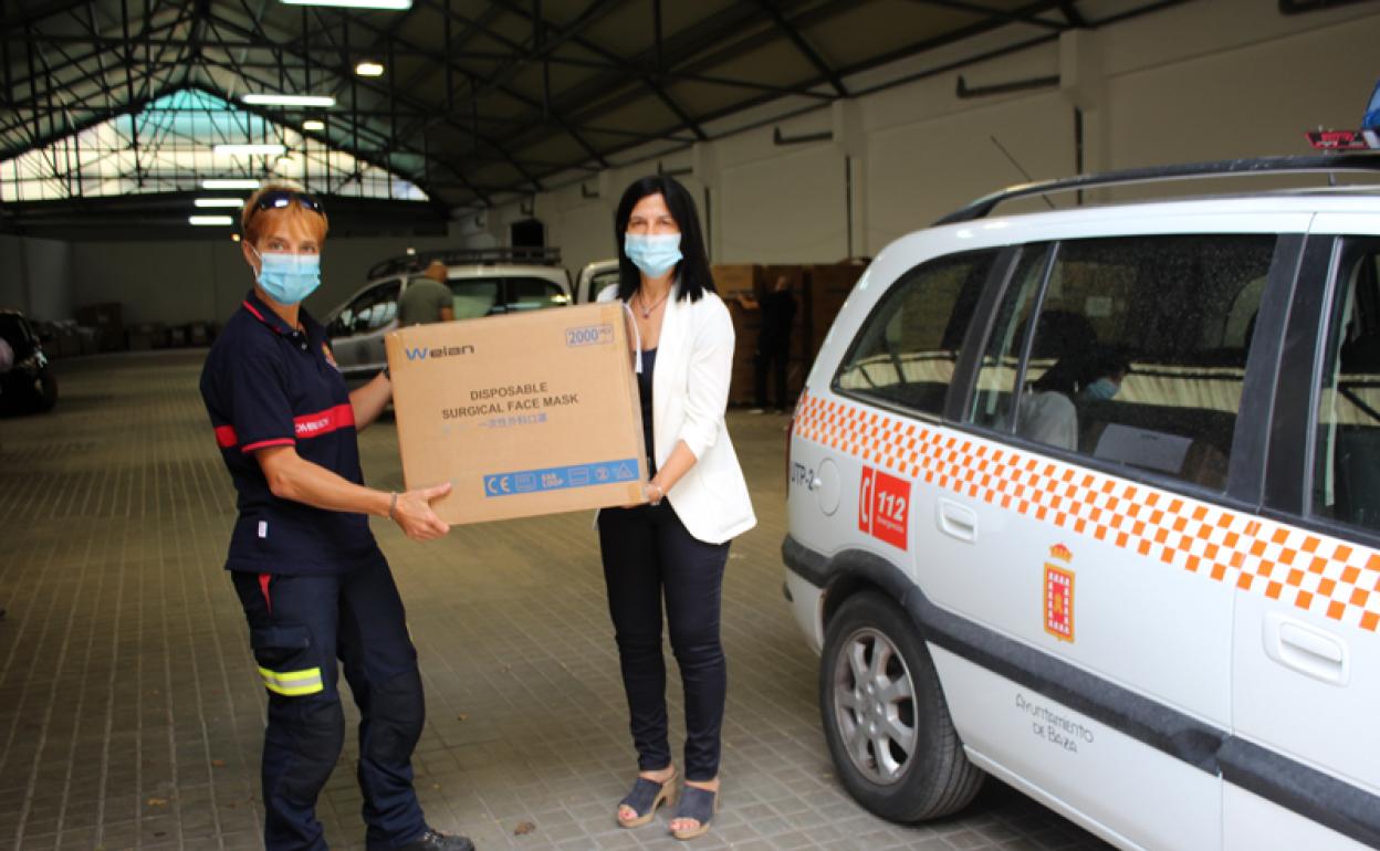 Los voluntarios de la Agrupación de Protección Civil de Baza han sido los encargados de han repartir las mascarillas para la protección del personal de centros educativos y asistenciales