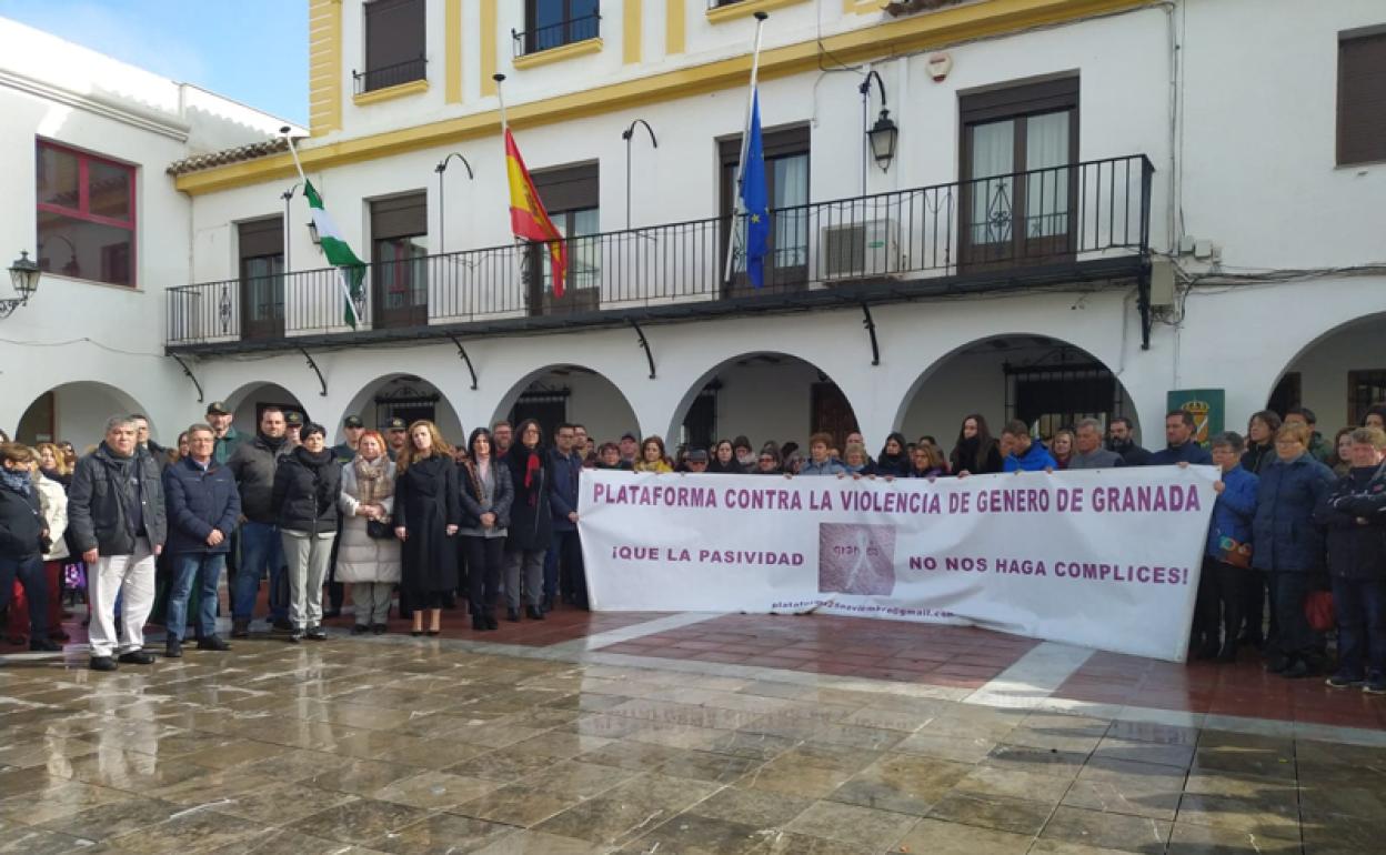 Cerca de doscientas personas se han dado cita hoy jueves 23 enero a las 13h en la puerta del Ayuntamiento de Caniles para mostrar su repulsa ante el asesinato
