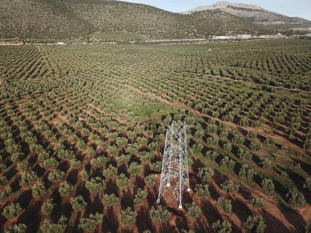 La imagen de una torre eléctrica en una finca del norte de la provincia demuestra que las obras de la línea de 400 kv entre ... Caparacena y Baza continúan pese a las advertencias de la Junta de Andalucía, que inició un expediente sancionador contra Red Eléctrica Española a finales de noviembre, por empezar estos trabajos sin contar con la autorización medioambiental autonómica.