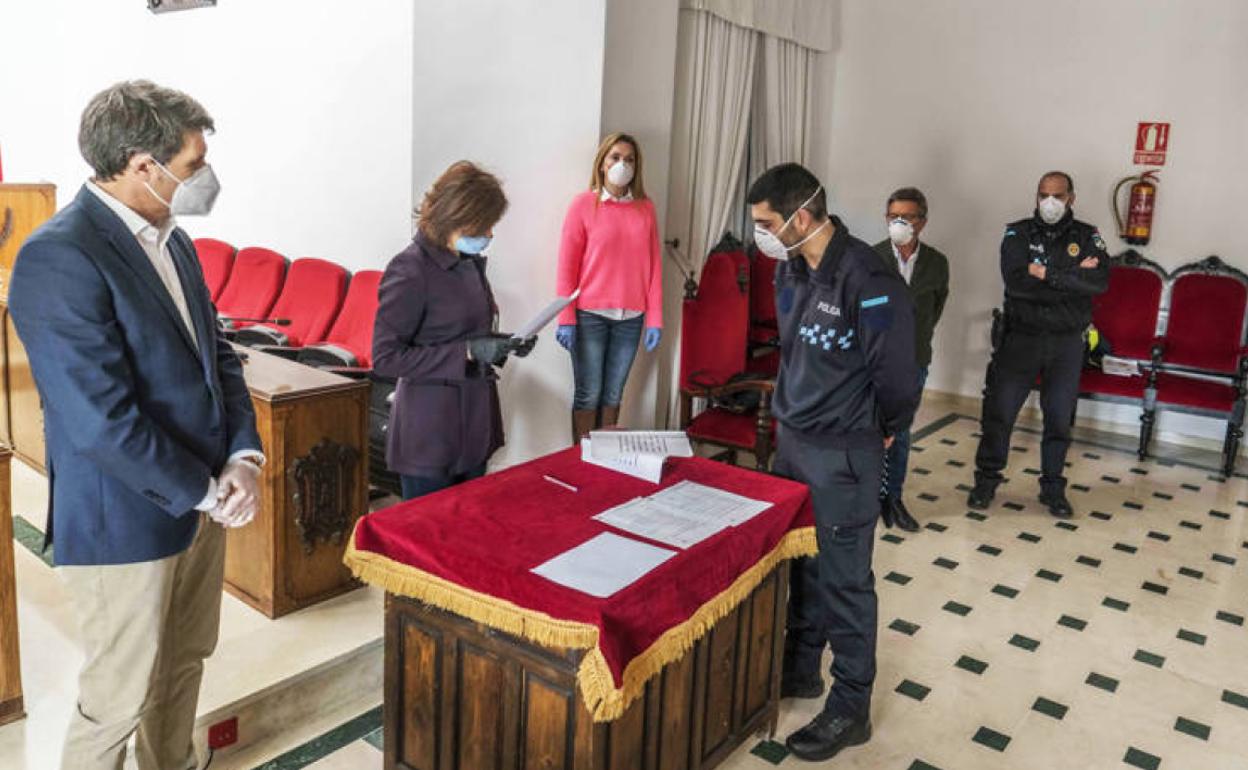 Es el segundo agente que se incorpora a la policía local en los últimos diez días para reforzar la plantilla local que ya suma 25 efectivos. El pasado 6 abril se incorporó otra agente, en este caso en prácticas, y ya realiza las tareas de seguimiento y control en el cuerpo de guardia de la Jefatura de la Policía Local. Y el pasado 26 de febrero tomaron posesión de su plaza como funcionarios otros dos agentes.