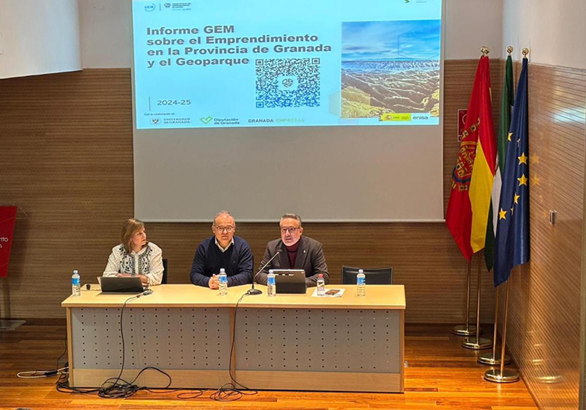 El diputado de Fondos Europeos, Desarrollo, Industria y Empleo, Antonio Díaz, junto a la profesora titular de Organización de Empresas de la UGR, Matilde Ruiz, ... ha presentado en el auditorio del Museo Arqueológico de Baza el Informe GEM 2024-25, un estudio que analiza en profundidad la realidad del emprendimiento en el Geoparque de Granada y que pone el acento en la sostenibilidad como eje estratégico de desarrollo del territorio.