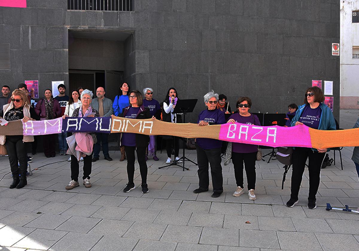Previamente, se pudo ver a una amplia representación de la Asociación Amudima mostrar una bufanda de 50 metros de longitud con ese lema que es un clamor y exige «Ni una más», durante todo el acto que comenzó con la lectura por parte de la presidenta de Amudima leyendo un alegato alusivo a las circunstancias por las que estaban allí.