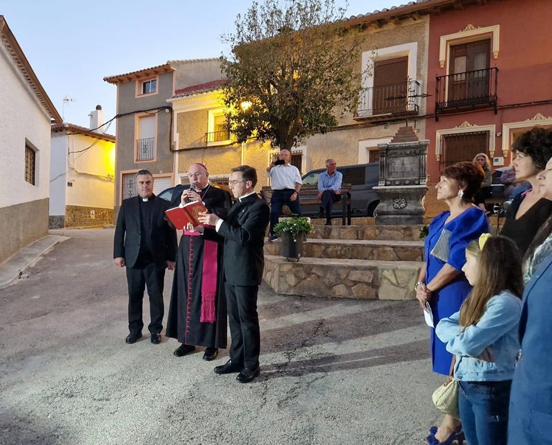 Después, el obispo visitó la plaza dedicada al beato mártir Fortunato Arias, hijo de esta localidad, que se inauguró el pasado 18 de agosto, y rezó frente al azulejo artístico con su imagen, pidiendo por todos los almacileños que tuvieron que emigrar en busca de trabajo.