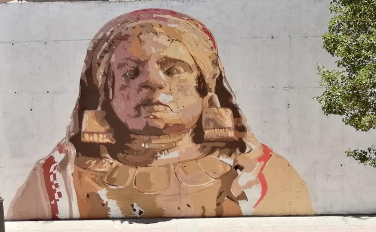 Franz Campoy realiza un mural urbano de 18 metros de la Dama de Baza