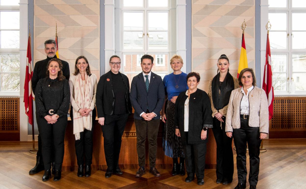 Los Ayuntamientos de Huéscar y Kolding estrechan aún más sus lazos de amistad e intercambio, con motivo del estreno del documental en la capital danesa ' ... La guerra más larga (The longest war). Para ello, han acudido hasta la ciudad hermana algunos miembros de la Corporación oscense, encabezando la delegación Ramón Martínez, alcalde de Huéscar, Soledad Martínez, teniente de alcalde, y las concejales Noelia Sánchez, Lucía Lozano y Rocío Blázquez.
