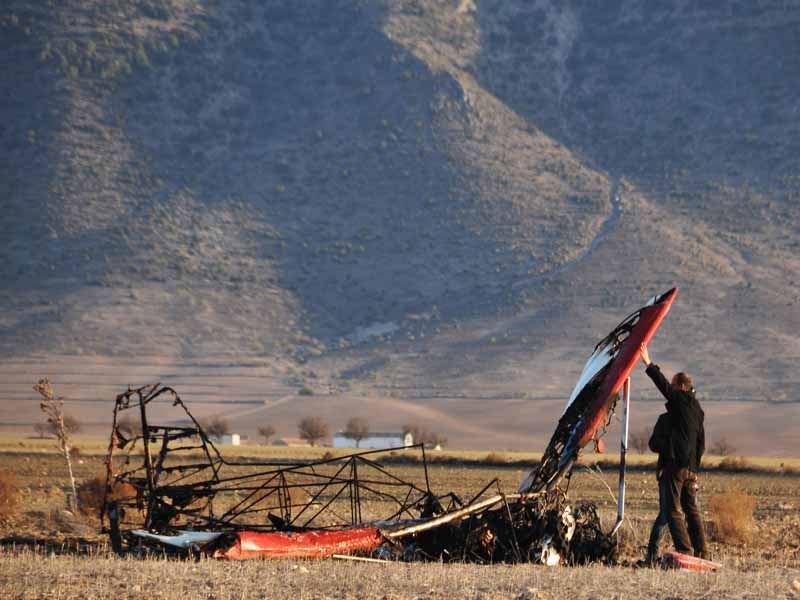 Un compañeros de las victimas ?una de las cuelas era de Murcia y la otra, de la ciudad alicantina de Orihuela, no acaba de creérselo. ? ... Aunque le falle el motor, los ultraligeros, de ese modelo planean muy bien. Hubieran podido aterrizar en cualquier sitio, porque el lugar en el que se estrellaron es totalmente llano e inmensamente amplio: no hay cables, no hay ningún obstáculo para poder aterrizar. No lo entiendo?, repetía horrorizado el testigo que también es piloto.No fue el único testigo que asistió a la tragedia. Al parecer, otra persona que presenció la caída del aparato y que fue quien aviso a los equipos de emergencia por medio del 112, intento apagar el fuego con un extintor y, cuando lo vació, arrojo tierra con sus propias manos en un intento desesperado por sofocar las llamas. Finalmente, corrió a un cortijo para pedir ayuda, pero todos sus esfuerzos resultaron infructuosos. Pista de aterrizaje El suceso ocurrió en la carretera provincial GR- 9104- que une las localidades de Orce- y María, pero aún en el interior de la provincia de Granada y el término municipal de Orce-, en la zona conocida como Pozo de la Rueda, a unos 160 kilómetros al norte de la capital granadinaEl fatal accidente se produjo las tres y media de la tarde, en un llano localizado a varios cientos de metros de una pista especialmente acondicionada para el despegue y aterrizaje de ultraligeros, desde donde había despegado el aparato siniestrado, según informaron fuentes de la Guardia Civil, que asumió la investigación del accidente.Hasta el lugar de los hechos acudieron, además de los agentes del instituto armado, una dotación de bomberos de la Agencia Provincial de Extinción de Incendios (APEI) del parque de la localidad granadina de Huéscar. Tras terminar de sofocar el incendio, esperaron a la llegada del forense para rescatar los cuerpos de los dos accidentados, que quedaron atrapados en la madeja de la estructura abrasada en que se convirtió el ultraligero tras ser devorado por el fuego.La zona del término municipal de Orce, en la que se produjo el siniestro, es utilizada habitualmente por aficionados a este tipo de avionetas. Además de la pista de aterrizaje, también hay un hangar. A lo largo de la tarde de ayer, compañeros de los infortunados pilotos fueron llegando al lugar del suceso, procedentes de Orihuela y Murcia.Al caer la tarde, los cuerpos calcinados de las dos víctimas del accidente fueron trasladados hasta el Instituto Anatómico Forense de Granada donde se les practicó la autopsia. A lo largo del día de hoy, está previsto que los cadáveres viajen hasta sus localidades de residencia para recibir sepultura.