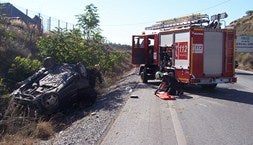 Los bomberos de Baza rescatan a una joven tras sufrir un accidente de tráfico en la carretera de Caniles