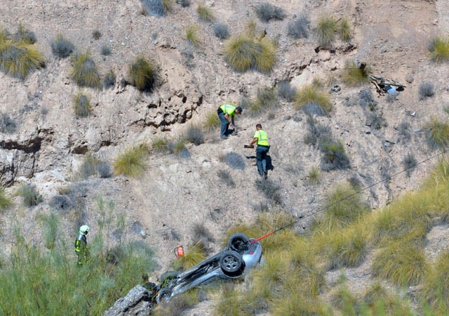 El vehículo en el que viajaban las dos personas fallecidas, se salió de la vía por circunstancias que se desconocen, y tras cruzarse al lado ... contrario de la carretera fue a caer por un barranco de unos 25 metros. El coche tras salir volando, impacto primero en un talud del propio barranco, desde donde reboto y fue a caer casi al fondo del mismo, quedando volcado con las cuatro ruedas hacia arriba. Hasta el lugar del accidente se desplazaron varios vehículos de la Guardia Civil de tráfico del destacamento de Baza, una ambulancia del 061 y el helicóptero de emergencias sanitarias también del 061. Los médicos nada pudieron hacer por los ocupantes del vehículo que habían fallecido en el acto. Para rescatar a las personas fallecidas un fue necesaria la intervención de los bomberos de Baza que tras acudir con un vehículo de rescate y asegurar el coche para que no se deslizara, tuvieron que requerir un segundo vehículo todo terreno, con el que accedieron por el fondo del barranco hasta llegar a unos metros de donde estaba el coche siniestrado y las dos personas fallecidas cuyos cuerpos fueron rescatados sobre las 17 horas y trasladados hasta el instituto anatómico forense de Granada, donde se les practico la autopsia, antes de ser trasladados hasta la localidad de Cuevas del Campo, donde hoy se celebrara el funeral y posterior sepultura. Con las dos de ayer, son tres las personas fallecidas en la comarca de Baza en accidentes de tráfico en los últimos cuatro días.