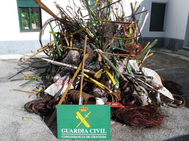 La Guardia Civil ha recuperado más de tres toneladas de cobre robado en un almacén de la localidad de Baza y ha detenido al propietario de este almacén, un hombre de sesenta y cinco años de edad, por un presunto delito continuado de receptación. El detenido, además, almacenaba de forma ilegal todo tipo de residuos metálicos, como lavadoras, frigoríficos, calentadores eléctricos de agua, estanterías metálicas, etcétera, careciendo de las autorizaciones preceptivas, por lo que también ha sido denunciado por ello ante la autoridad competente.