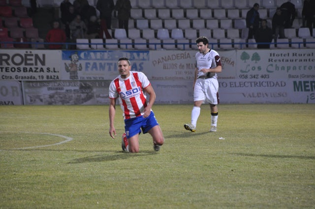 El El El El E En la foto Moha que debuto con el Baza ayer ante el Churriana El equipo de Pepe Sánchez, suma su cuarta victoria consecutiva, logrando 12 puntos de 12 posibles y alcanza la zona alta de la clasificación, deshaciendo el empate a 26 puntos que tenían, Baza, Arenas, Guadix, La Zubia. Ahora el Baza ya tiene 29 puntos cuando acaba de disputarse la primera jornada de la segunda vuelta del campeonato.Lo mejor del partido entre el Baza y el Churriana, fue el resultado, para los locales que dominaron y crearon ocasiones para haber aumentado el marcador. Pero una vez más el equipo local se complico la existencia, se quedo en inferioridad por expulsión de Miguel Alba y termino pidiendo la hora, ante un Churriana que puso todo lo que tenia, en busca del empate. El Baza afronto el partido con tres sensibles bajas como son Enrique Cruz, Félix y Stily. Aunque si debuto el nuevo fichaje, el veterano centrocampista Moha, que puede ser un gran refuerzo, aunque no el único para la segunda vuelta del campeonato liguero. Pese a las ocasiones de que dispuso el Baza, solo pudo lograr un gol por medio de Gadea tras un saque de esquina. El gol del defensa llego en el minuto 39 de partido. En la segunda mitad del partido, cuando el Churriana intento profundizar en busca el empate, el Baza lo intento al contragolpe, pero no fue efectivo y no pudo cerrar el marcador, lo que volvió una vez más a propiciar nervios sobre el césped y en la grada. Ambos entrenadores, por una u otros intereses movieron sus respectivos banquillos, pero el marcador no se altero. Ficha: BAZA: José Sánchez, Miguel Alba, Mariano, Gadea, Adri (Morales, m. 65), Moha, Manu, Dune (Adrian Manzano, m. 79), David Caballero ( Mata, m. 89), Kechi ( Jose Bernardo, m. 48).Mendez. CHURRIANA: Oski, Carrasco, Che ( Juanra, m. 57), Miguel, Cristóbal, Espigares, Jorge ( Arcos, m. 54) Jesús ( Manolo, m. 82), Vicente ( Joni, m. 57) Gatuso y Armando. Goles: 1-0.m. 39: Gadea.Arbitro: Lozano López (Linares) amonesto a Morales, Moha, David Caballero, Mendez, y expulso con roja directa a Miguel Alba en el minuto 77. También fueron amonestados los visitantes, Miguel, Cristóbal y Joni.