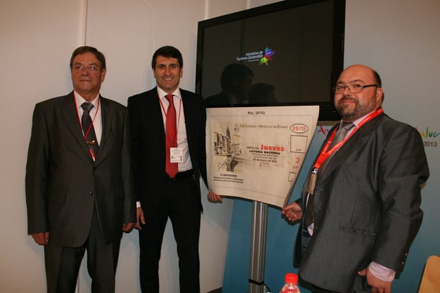 El boleto de la lotería del jueves del 28 de marzo conmemorativo del 75 aniversario de la Federación de Hermandades y Cofradías de Baza presentado en FITUR