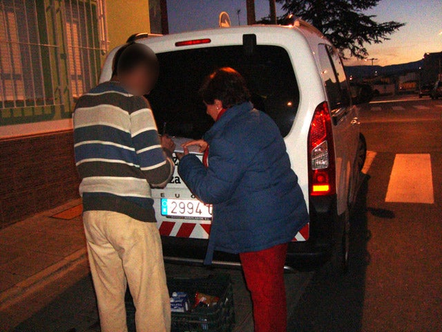 Una voluntaria de Cruz Roja entrega alimentos a un vecino de Caniles La Asamblea de Cruz Roja de Baza, hace un llamamiento a las personas solidarias para que dentro de sus posibilidades, les hagan llegar cualquier tipo de alimentos no perecederos con el fin de poder atenderlas necesidades de personas que lo necesitan y que acuden a Cruz Roja en busca de un auxilio, la mayoría de las veces de forma urgente y desesperada. Los almacenes de Cruz Roja, están cada vez más vacios y entre otros alimentos, necesitan leche, que es el alimento más inmediato que ofrecer a familias con hijos pequeños.