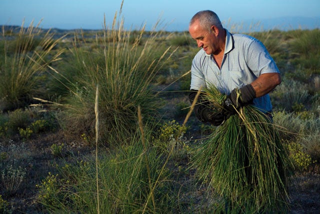 Un hombre recolesta esparto en una atocha ( Pascal Janin) El próximo viernes se presentan las conclusiones de la investigación sobre el aprovechamiento industrial del esparto financiada por el programa de desarrollo rural LiderA. El próximo viernes por la tarde, en el Centro de Visitantes del Ecomuseo de Castilléjar, la Asociación de Voluntariado Ambiental El Espejuelo expondrá los resultados obtenidos del estudio de investigación sobre la factibilidad de emplear esparto como materia prima integrante de piezas plásticas termo conformadas, estudio en el que se depositan buena parte de las esperanzas de que el esparto continúe siendo viable en el Altiplano, una vez que la demanda para estopa se ha paralizado por el derrumbe del sector de la construcción.