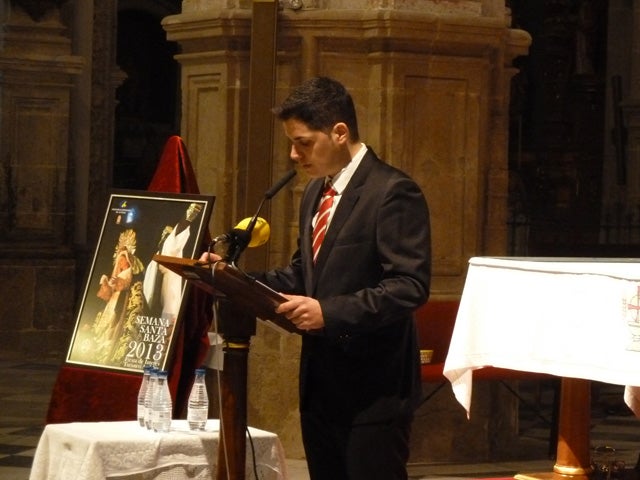 El joven cofrade José Ramón Ibarra, capataz del paso de Nuestro Padre Jesús de la Paz ha sido el encargo de exaltar el cartel de la Semana Santa de Baza 2013, una fotografía del paso de la Santa Cruz, cuyo autor es Pedro Carrión.El acto celebrado en la Iglesia Mayor de Baza fue presentado por José María Manzano, vicepresidente de la Federación de Cofradías, entidad que organizo el evento.