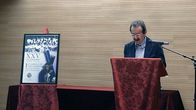 Jesús Pedrosa presenta el cartel de XXV aniversario de la cuadrilla de costaleros de la cofradía del Nazareno de Baza