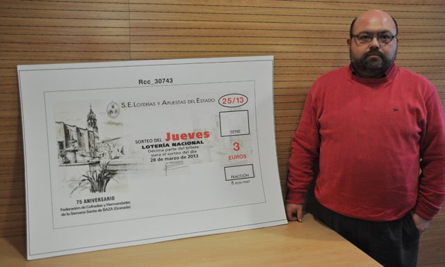 El miércoles se terminaron de vender todos los décimos del sorteo. Muchos compradores al adquirir sus boletos manifestaban que no les importaban mucho que no ... les tocaran, pues el primer objetivo esta vez era guardar el decimo de recuerdo. Aunque si toca que mejor recuerdo que un buen pellizco de dinero. La imagen que ilustra los 6 millones de décimos del Sorteo de la Lotería Nacional del Estado para hoy es una imagen de la Iglesia y Plaza Mayor de Baza, según un dibujo realizado en tinta china por María José Cifuentes.La iniciativa de promocionar la Semana Santa de Baza, y más específicamente el aniversario de la Federación de Cofradías y Hermandades de Semana Santa, partió del actual presidente de la Federación, Jose Gabriel López Carreño, que es empresario y regenta la administración número cinco de Baza, situada en la Plaza de las Eras. José Gabriel propuso la idea a la Junta de Gobierno de la Federación y se encargó de realizar todos los trámites y gestiones hasta lograr que fuese aceptada la propuesta. López Carreño explica que a la hora de diseñar la imagen del boleto, se optó por un dibujo de la principal plaza de Baza y de fondo la Iglesia Mayor, para difundir una imagen general del municipio, ante la dificultad que suponía decidirse por una sola imagen de alguno de los titulares de las Cofradías y Hermandades de Semana Santa de Baza.