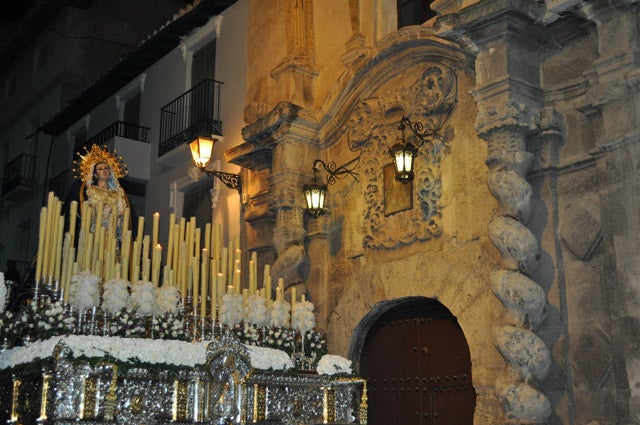 Excelente desfile procesional de la Cofradía del Santísimo Cristo de la Misericordia y María Santísima de la Soledad por las calles de Baza con un cortejo bien organizado. La cofradía de la Soledad es la que más hermanos tiene de todas las corporaciones de la Semana Santa de Baza y se deja notar en sus desfiles procesionales. Anoche la procesión aunque salió a su hora habitual las 20 horas, pero debido a calendario, lo hizo ya de noche cuando lo habitual es que su salida se realice cuando la luz del día aun no se ha apagado, lo que resulto un tanto extraño.