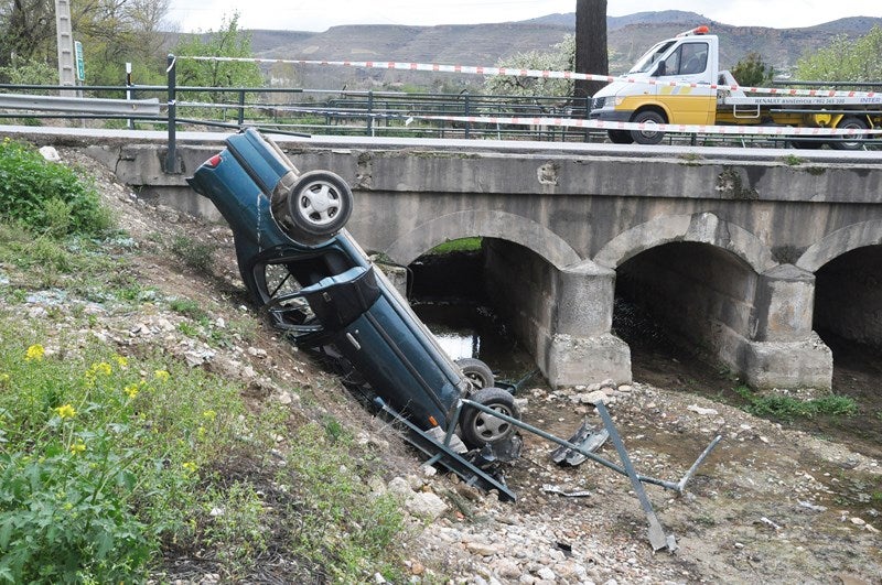 Dos personas de mediana edad han resultado heridas en un accidente de tráfico ocurrido esta tarde en las afueras de Baza. El accidente se ha producido sobre las 17,35 horas en la carretera que une Baza con Caniles, justo a la salida de una curva en la zona conocida como ?Los Curaeros?. El turismo en el que viajaban dos hombres se ha salido de la vía y tras romper la valla de un puente ha caído sobre una pequeña ladera. La parte delantera del coche siniestrado ha quedado justo al lado del cauce de un pequeño arroyo.