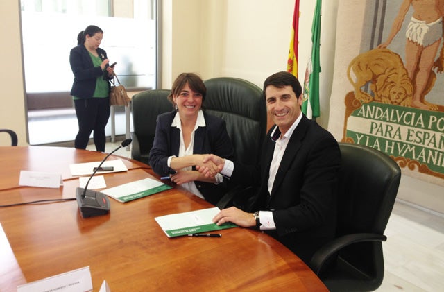 El alcalde de Baza, Pedro Fernández Peñalver, y la consejera de Fomento y Vivienda, Elena Cortés, han firmado esta mañana el convenio de adhesión al Programa Andaluz de la Vivienda con el que se ofrece servicios de información y asesoramiento en materia hipotecaria y se quiere proteger a las familias de situaciones de desamparo provocadas por los desahucios.