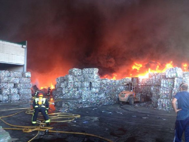 Junto a Bomberos de Guadix, Bomberos de Iznalloz, personal de Infoca, GREA, Protección Civil de Guadix, Guardia Civil, Policía Autonómica, personal del Ayuntamiento de Dólar, ... personal directivo de la empresa y bajo el Asesoramiento Técnico y la Coordinación del 112 trabajan en el control del incendio que se ha provocado en esta Planta para Reciclado de Envases de PET. A estas labores de extinción se han unido también medios aéreos. El tereftalato de polietileno (más conocido por sus siglas en inglés PET) es un tipo de plástico muy usado en envases. La mayoría de los plásticos generan al arder grandes cantidades de humo muy denso y negruzco, generando gases mortales como el monóxido de carbono y otros altamente tóxicos como el cianido de hidrógeno, el cloruro de hidrógeno y el fosgeno.
