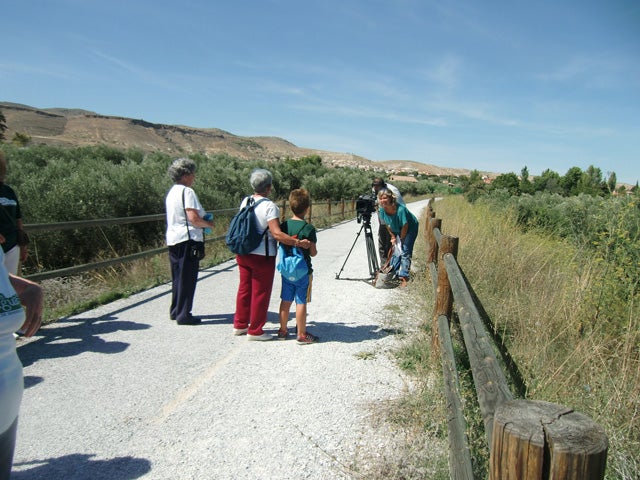 Un nutrido grupo de socios de la asociación de senderismo Siete Leguas colabora en la grabación que Canal Sur está realizando en Baza del programa Salud al Día. El programa va a tratar sobre los beneficios que aportan el deporte del senderismo y que menor que solicitar la colaboración del grupo senderista Siete Leguas para realizar un recorrido por la Vía Verde de Baza y a la misma vez mostrar algunos lugares emblemáticos de la ciudad.