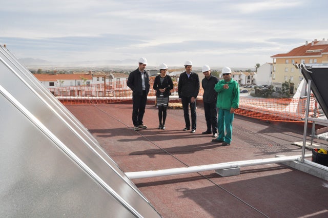 En el taller de empleo Baza Solar II trabajan 15 personas desde enero El calor del sol calentará el agua caliente que se utilice en las instalaciones deportivas del campo de fútbol de la Alameda, del Constantino Navarro y del Pabellón de Deportes.12 alumnos y un monitor del taller de empleo Baza Solar II trabajan en la colocación de placas termosolares para generar agua caliente sanitaria. Completarán su formación con el montaje de un sistema fotovoltaico para la elevación y distribución de agua riego para los 50 huertos sociales que el Ayuntamiento de Baza está adecuando para contribuir al sostenimiento de las familias de Baza sin ingresos económicos ni tierras de labor en propiedad.