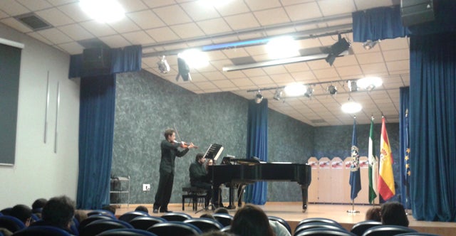 A continuación se pasó a la charla-conferencia sobre Andalucía impartida por el Historiador León Moreno García titulada ?Andalucía, 33 años celebrando nuestra Autonomía?, en ... la que se dio un repaso a la historia de Andalucía y se analizó su Estatuto, presentando igualmente personajes relevantes de la historia andaluza e hitos fundamentales en ésta. El acto se cerró con un concierto magistral de violín y piano a cargo de los hermanos Samuel y Antonio García con obras españolas y de inspiración andaluza. Samuel es violinista por el Conservatorio Superior de Madrid y miembro de la Joven Orquesta Nacional de España y la Orquesta Joven de Andalucía así como Antonio García es el profesor pianista acompañante del Conservatorio Profesional de Música de Baza. Entre las piezas que se pudieron escuchar en este concierto encontramos ?Beau soir? de Claude Debussy, ?Nana (de Siete canciones populares españolas)? de Manuel de Falla o ?Recuerdos de la Alhambra? de Francisco Tárrega, entre otras muchas.