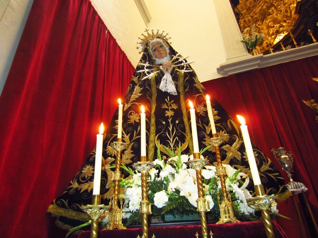 El acto comenzó con una preciosa saeta en la voz de Roberto González tras la cual María Muñoz realizó la presentación del pregonero Juan Antonio Díaz con cariño y admiración. El pregonero hizo gala de su condición de historiador y del amor y devoción que profesa a la Virgen de los Dolores. Por tal motivo, quiso destacar el pasado y presente de esta cofradía, resaltando algunos datos históricos de la misma y describiendo bellamente la estación de penitencia del Viernes Santo y sobre todo alabando la imagen dolorosa y todo aquello que representa.