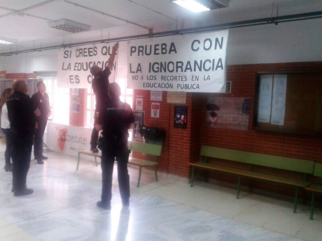 La Junta Electoral de la zona de Baza, resolvió ordenar a los presidentes de las mesas electorales situadas en el IES ?Alcrebite? de Baza, que retiraran las dos pancartas colocadas hace más de dos años en el interior del edificio en las que se podía leer? Si crees que la educación es cara, prueba con la ignorancia. No a los recortes en la educación pública?.