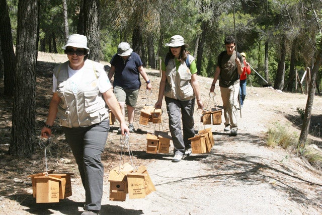 Voluntarios ambientales del Parque Natural Sierra de Baza, instalan nidos para aves insectívoras