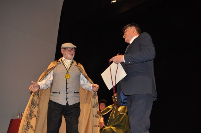 El director de Ideal, Eduardo Peralta, nombrado cofrade de honor.(En la foto el actor Pepe Ruíz). Aunque se constituyó en el año 2013, la Cofradía Gastronómica Cultural del Cordero Segureño, hizo se presentación oficial el sábado pasado en un excelente acto celebrado en el Teatro Oscense. En el transcurso del evento se entregaron diversos distinciones y reconocimientos y se nombró cofrade de Honor a Eduardo Peralta de Ana, director de Ideal, quien agradeció la distinción, en nombre del periódico que dirige, pues entiende que es a Ideal a quien se nombra Cofrade de Honor por medio de su persona.