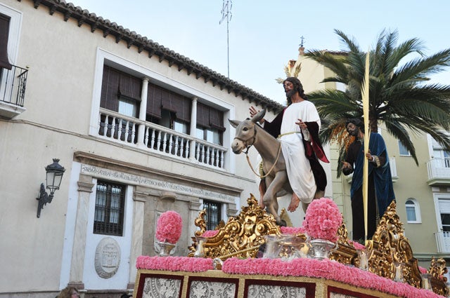 Real e Ilustre cofradía de la Entrada Triunfal de Jesús en Jerusalén (Jesús de la Paz), Santísimo Cristo del Amor, Nuestra Señora de la Esperanza y San Juan Evangelista abre los desfiles procesionales de la Semana Santa bastetana. Antes de iniciarse el cortejo, a las 16 horas, la cofradía de la Soledad entregará las llaves para el inicio de la Semana Mayor a la cofradía de la Esperanza a las puertas de su casa de hermandad en la Plaza de San Juan.