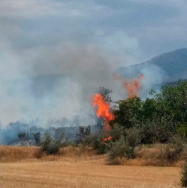 Un incendio quema dos hectáreas de terreno agrícola y 100 olivos en Baza