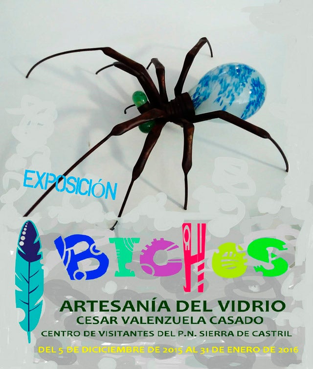 El Centro de Visitantes del Parque Natural de la Sierra de Castril, acoge la exposición "Bichos" de César Valenzuela Casado. La exposición consta de un total de 20 piezas en las que el artista mezcla hábilmente vidrio soplado, forja, reciclaje y, sobre todo, mucha, mucha, imaginación.La exposición se inaugura el próximo sábado 5 de Diciembre, y estará abierta hasta el 30 de Enero de 2016, en el horario de apertura del Centro de Visitantes, de Jueves a Domingo, de 10.00 a 18.00 horas.