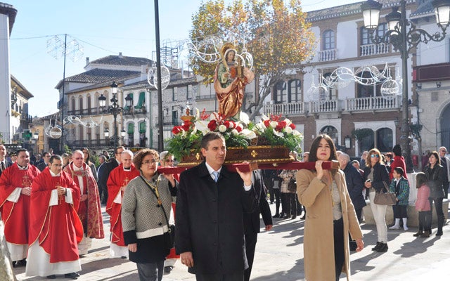 Como cada 4 de diciembre, Baza ha celebrado la festividad de su patrona Santa Bárbara. La imagen portada por cuatro concejales, se ha traslado en procesión hasta la Iglesia Mayor acompañada de la Corporación Municipal bajo mazas y de todo el clero local. También han participado del cortejo una representación de las fuerzas de seguridad, Policía Nacional, Guardia Civil, y Policía Local, y el jefe de Bomberos. Y el acompañamiento de la Banda Municipal de Música dirigida por su titular Tomas Pujol.