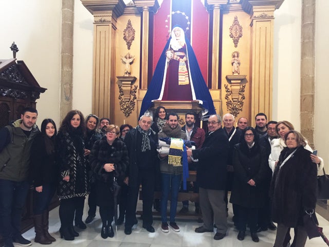 Las dos nuevas imágenes completaran el paso del Descendimiento.Ayer domingo la Asociación del Rocío de Baza, entregaba a la Cofradía de Santiago la vestimenta que la nueva dolorosa de la Hermandad, vestirá el próximo domingo para su bendición y con la que saldrá por primera vez en procesión durante del próximo Viernes Santo. Fue un acto sencillo, realizado en la capilla de Ntra. Sra. de los Dolores y dirigido por el consiliario de la Cofradía, Antonio Travé Morales.