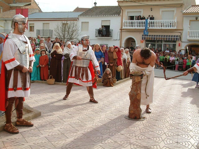 La Semana Santa Viviente es uno de los acontecimientos más representativos de este municipio de la comarca de Baza. En la representación participan ?entre actores ... aficionados, figurantes y técnicos- más de 600 vecinos de la localidad y se esperan varios miles de visitantes sumando las dos representaciones. La diputada provincial de Cultura y Memoria Histórica y Democrática, Fátima Gómez, la alcaldesa de Cuevas del Campo, Carmen Rocío Martínez Ródenas y el director del drama, Javier Requena, han presentado esta mañana en Granada los actos programados para la decimosexta edición de la Semana Santa Viviente, que comenzó el pasado Domingo de Ramos con la entrada triunfal de Jesús en Jerusalén y la recuperación de los oficios perdidos y que continúa el jueves con lo que es un ensayo general y Viernes Santo con representación teatral del Drama de Pasión, Muerte y Resurrección y un mercado judío donde se venderán productos de la zona. La diputada provincial de Cultura y Memoria Histórica y Democrática, Fátima Gómez, ha recordado que "se trata de un evento con una trayectoria muy importante, que siempre ha sido apoyado por la Delegación de Cultura de la Diputación de Granada y que desde el principio se pretendió que además del tema religioso fuera un espacio de creación de diversas disciplinas artísticas necesarias para el desarrollo del proyecto, a través de talleres de teatro, música y recuperación de oficios tradicionales". Gómez ha destacado que "es un proyecto muy completo, donde participan niños, jóvenes, adultos, hombres y mujeres sin ningún tipo de distinción, consiguiendo durante los meses de preparación que Cuevas del Campo sea un hervidero de actividades que se extienden durante todo el año". La alcaldesa de la localidad, Carmen Rocío Martínez Rodenas, ha manifestado que "la Semana Santa Viviente de Cuevas del Campo es un precioso espectáculo religioso y teatral, con una escenografía espléndida y enriquecida notablemente, tanto por los personajes como por su banda sonora, sin olvidar unos escenarios naturales de increíble belleza, como la colina que representa el Monte del Calvario". El nuevo director del drama, Javier Requena, ha destacado que "cuando me incorporé al proyecto me sorprendió cómo un pueblo se vuelca completamente con el drama y lo revive e interioriza en cada personaje, desde Jesucristo hasta el último figurante del pueblo judío y sobre todo, lo fácil que resulta trabajar con todos ellos porque lo llevan en el ADN desde que nacen y lo viven desde pequeños". Por último, el actor Paco Alcaría, que interpreta desde los inicios el papel de Poncio Pilato, ha recordado la figura de Antonio Víctor Martínez y cómo le surgió la idea cuando siendo un niño presenció en Almería el rodaje de "El Evangelio según San Mateo" de Pier Paolo Passolini. Alcaría también ha rememorado la ilusión y la modestia de las primeras ediciones del drama, cuando las mujeres del pueblo creaban el vestuario con retales de colchas y cortinas viejas, los cascos de los soldados romanos eran de plástico y las lanzas eran las barras de hierro de los andamios". La Semana Santa Viviente de Cuevas del Campo fue declarada en 2004 Fiesta de Interés Turístico de Andalucía y en 2010 recibió la consideración de Patrimonio Inmaterial de Andalucía. La representación teatral del drama de la pasión, basado fielmente en el Evangelio de San Mateo, a partir de la versión cinematográfica de Passolini, está estructurada en tres actos, más un preámbulo y un epílogo y comprende una veintena de escenas, entre ellas el desfile del ejército romano, la entrada del gobernador de Judea, el juicio de Pilato, la flagelación, la subida al Calvario con las Tres Caídas, la crucifixión, el entierro y la resurrección y finalmente, la despedida desde el Gólgota. La Semana Santa Viviente de Cuevas del Campo surge en 2001 como una herramienta de apoyo y promoción a las actividades de teatro, junto a las de Semana Santa en la localidad. Está organizada por la Cofradía de Nuestra Señora de los Dolores de Cuevas del Campo, con la colaboración del Ayuntamiento de la localidad y la Diputación Provincial de Granada, entre otras entidades.