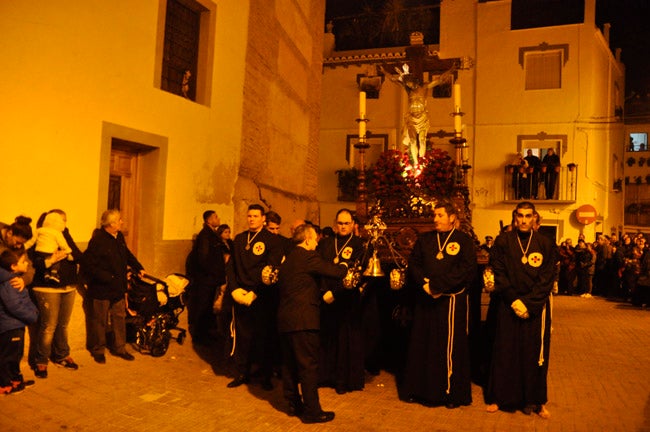 La procesión de la Cofradía de la Soledad, fue la primera realizar su estación de penitencia sin la preocupación de estar pendiente de la lluvia. Aunque frio sí que hacía, lo que no impidió que una noche más la gente acudiera a la Plaza de la Merced para ver salir al Cristo de la Misericordia y a la Soledad. Como es habitual no había espacio para acoger a tantas y tantas personas que querían ver la salida de ambos pasos.