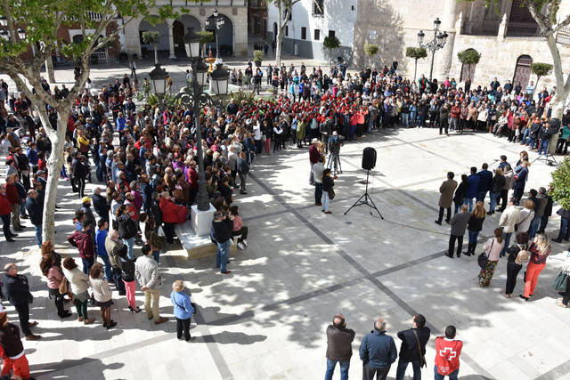 En el IES Pedro Jiménez Montoya, también se ha celebrado una concentración de alumnos y profesores a primera hora de la mañana.