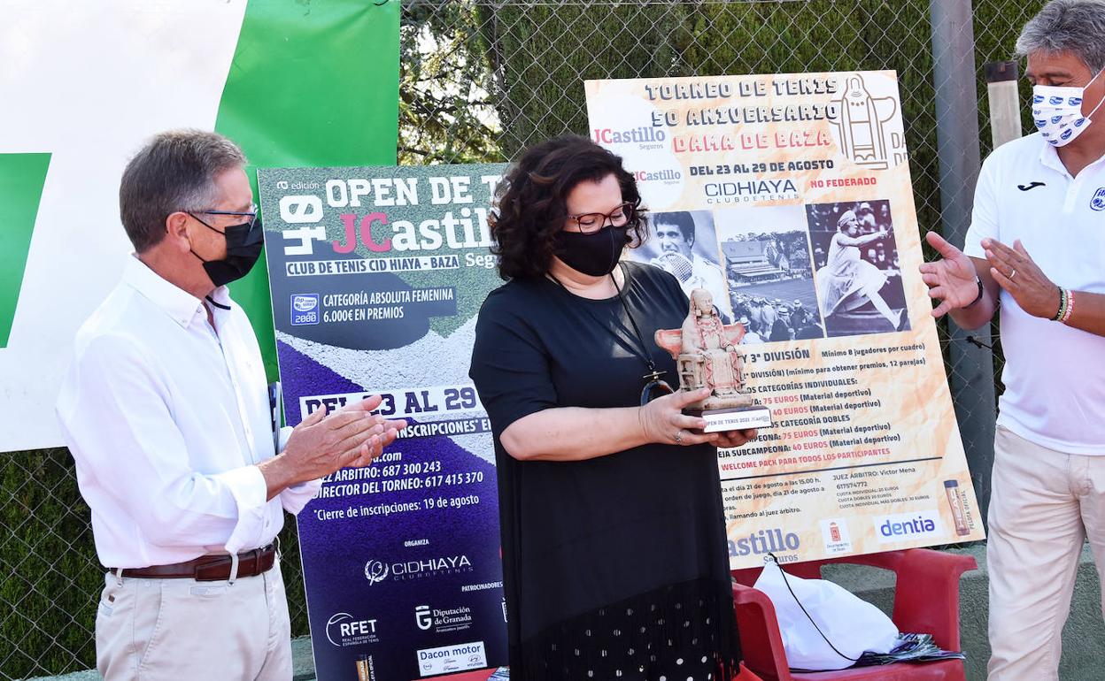 El presidente del Club aprovecho la ocasión para hacer entrega a la presidenta de Coviran, Patro Contreras, del máximo galardón del torneo con la imagen de la Dama de Baza como protagonista en esta edición que coincide con la celebración del 50 Aniversario de su descubrimiento.