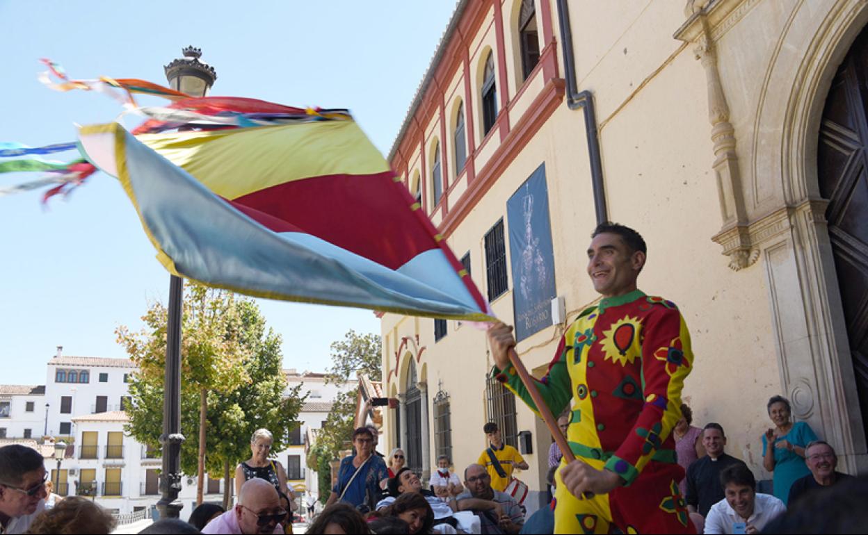 Después llegaron las sesiones de fotos y en la puerta de la iglesia realizo la primera jura de bandera de este año 2022 dedicada a todos los presentes en el acto y los ausentes por la pandemia de Civid-19. Fue una jura larga y pausada, racheada y potente hasta el punto de rozar las cabezas de las personas postradas bajo la bandera, demostrando el control y la preparación con la que llega José Antonio Escudero de cara a los próximos seis de septiembre en Baza tres días más tarde en Guadix.