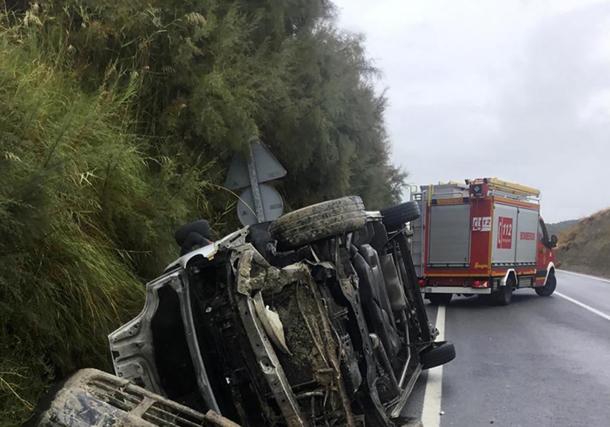 En el caso de Benamaurel, la calzada se encontraba muy deslizante y con acumulación de agua en arcenes, lo que pudo ser determinante para la pérdida de control del vehículo.