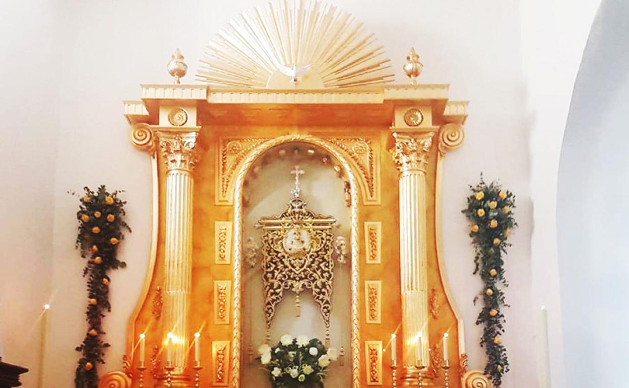 El retablo de la Simpecado de la Hermandad del Rocío luce todo su esplendor