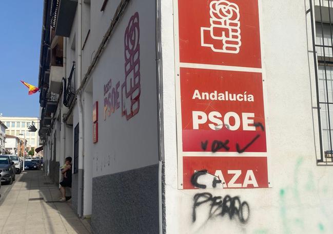 Tal y como muestra el PSOE a través de varias imágenes compartidas en su cuenta de Facebook, el local presenta pintadas que rezan «caza perro» y «Vox», además de unas huellas de manos, todo ello en color negro.