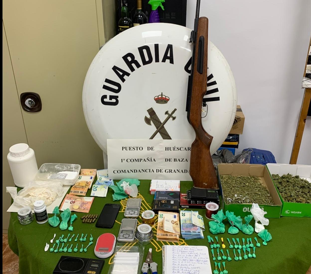 La Guardia Civil de Huéscar solicitó autorización al juzgado y con la ayuda de la Guardia Civil de Castril registró los dos domicilios sospechosos y en ambos encontraron tanto marihuana como cocaína.